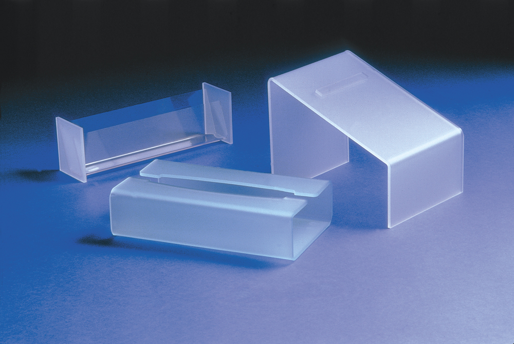 Acrílico frost nas duas faces com acabamento mate, semelhante ao vidro fosco.