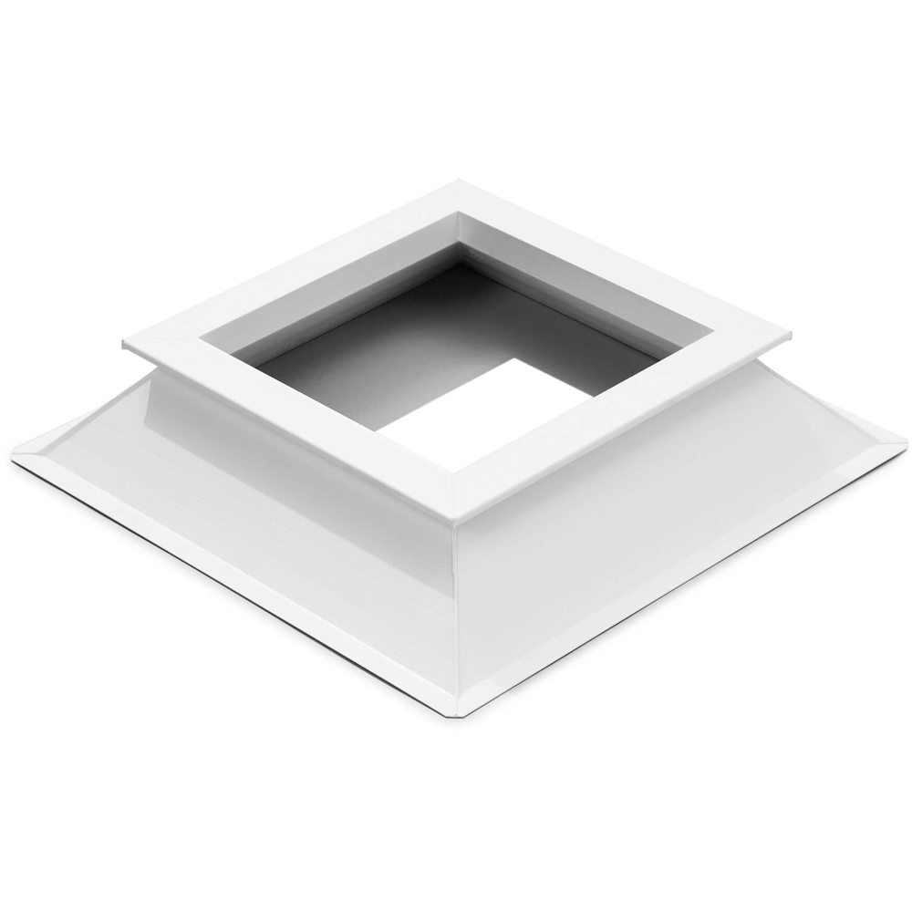 Base-rodapé em PVC (para clarabóias quadradas e retangulares) e base-rodapé em POLIÉSTER reforçado com fibra de vidro (para clarabóias circulares). Estas bases-rodapé permitem o isolamento lateral, a adaptação da cúpula à cobertura/telhado e uma maior resistência na instalação com tela asfáltica.