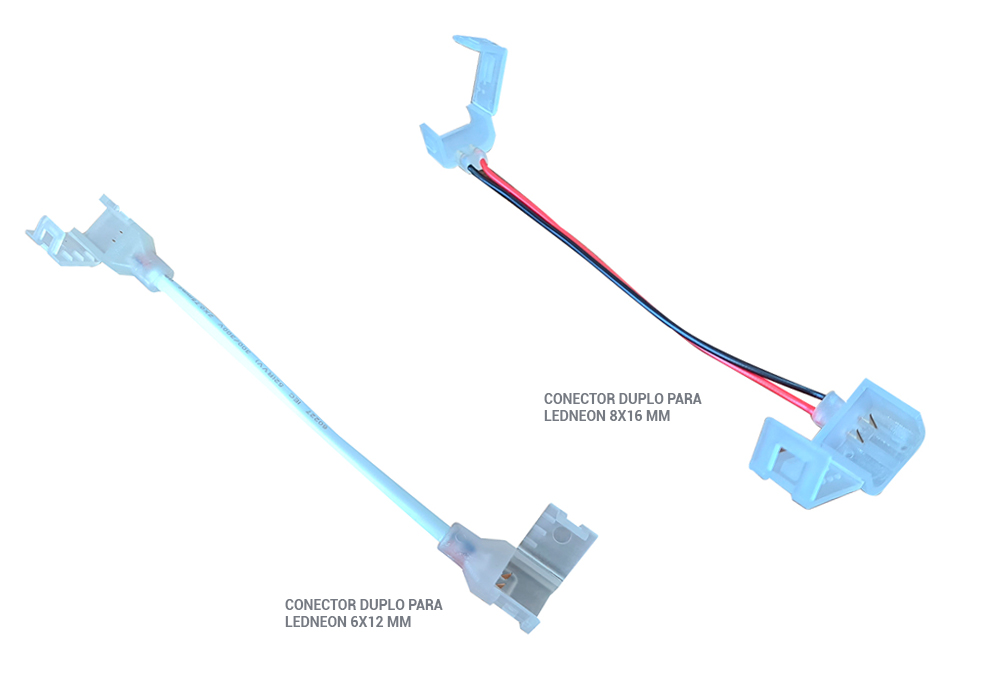 Conector duplo para LEDNEON monocolor de 6 x 12 mm ou 8 x 16 mm.