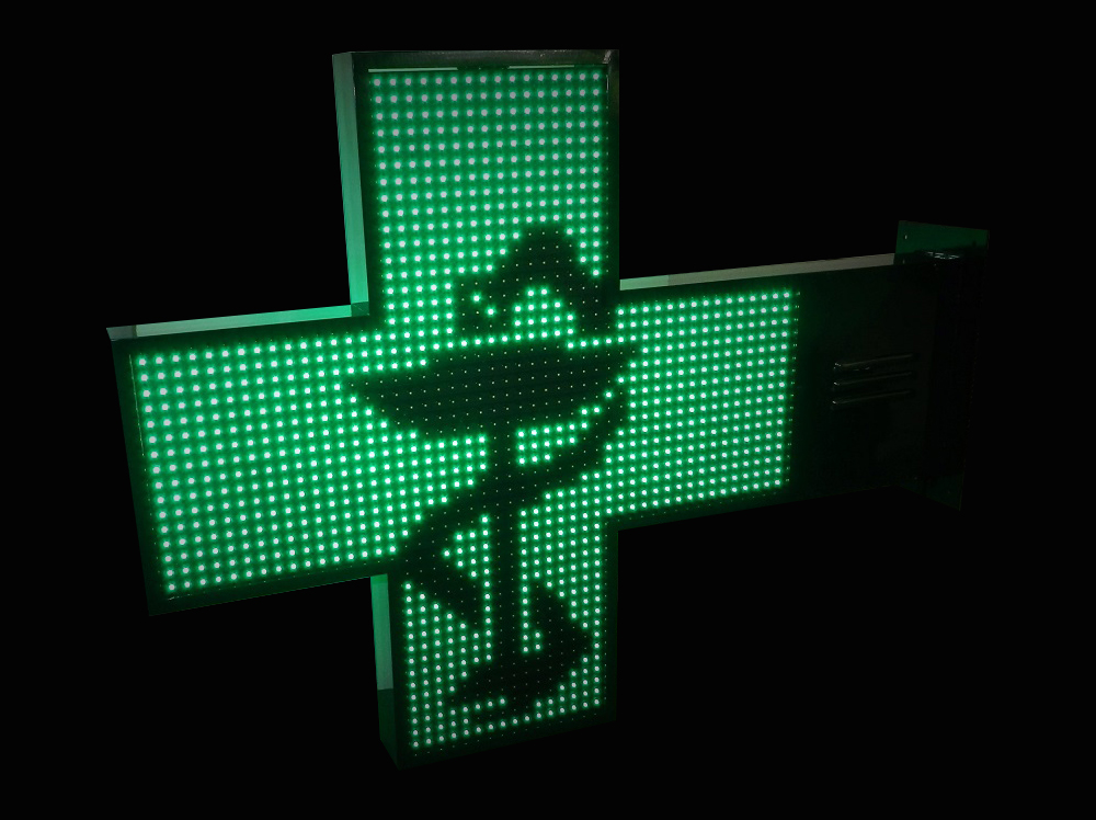 Cruz de farmácia desenvolvida com tecnologia LED, caixa estanque para exterior.