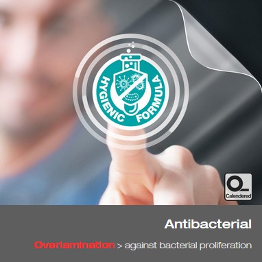 Película calandrada brilhante, desenvolvida para impedir a proliferação das bactérias.