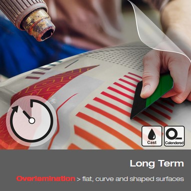 Películas calandradas e cast para aplicações em superfícies planas, curvas e quinadas dependendo do tipo de película.