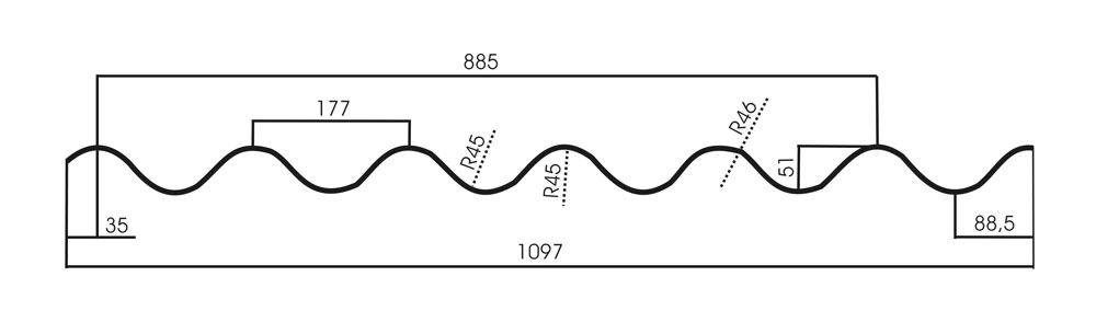 Chapa policarbonato ondulado WAVE com 1 mm de espessura e 1100 de largura.