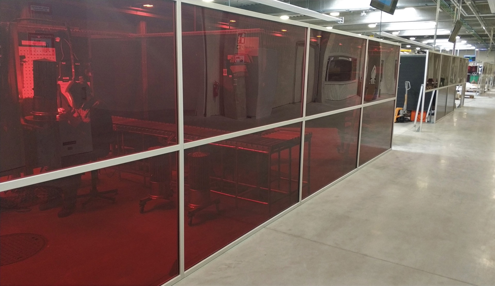 - Ecrãs de soldadura a grande escala em áreas de soldadura robotizada.