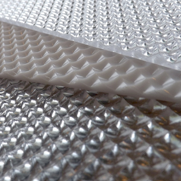 Poliestireno Prismático. A sua boa transmissão de luz e os diversos texturados, permitem a utilização destas placas em tetos falsos, candeeiros e luminárias.